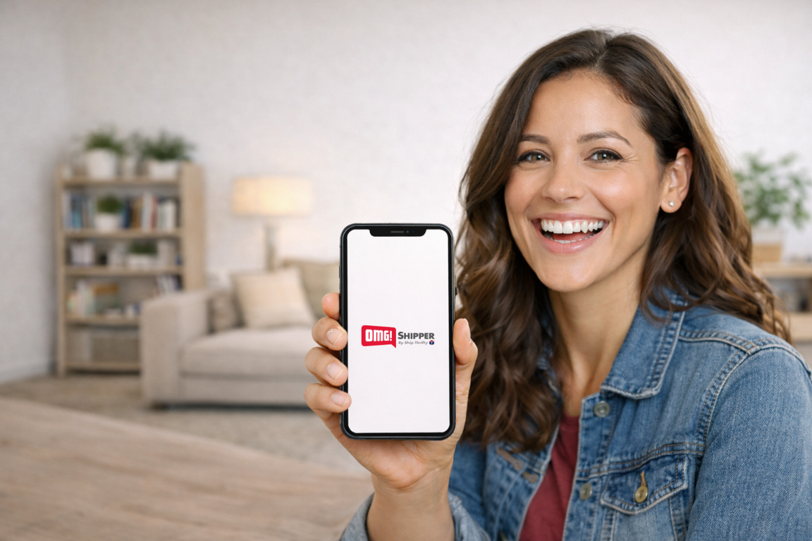 The PDF shipping label is uploaded to the OMGshipper app – no printer required.